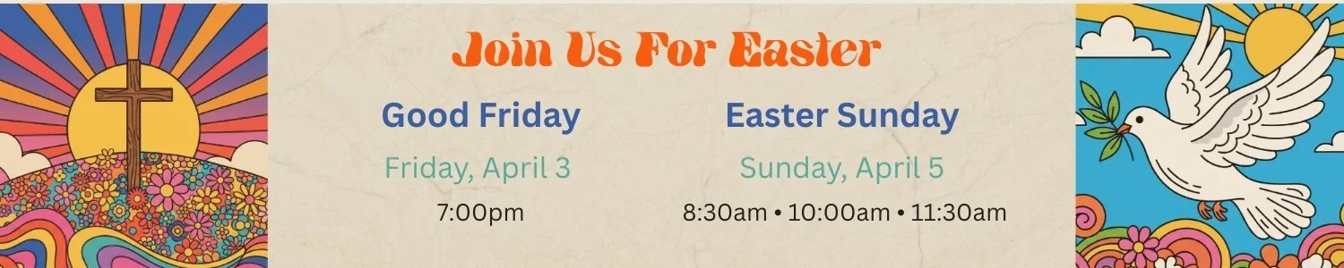 We strongly recommend arriving 10 minutes before the start of service so you can park, check in your kiddos, grab some coffee, and find a seat. Services are about 70 minutes long and include worship and an inspiring message from the Bible.